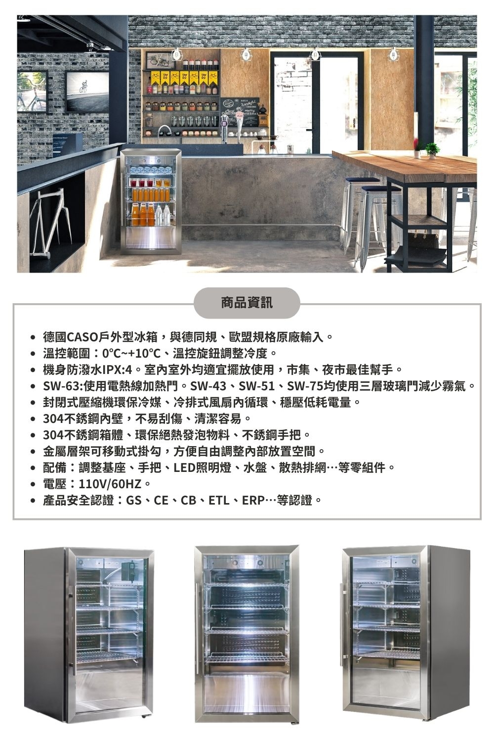 CASO SW-63 銀色系 63公升單門定頻冰箱 110V/60Hz 右開門小型家電 1年保固 R600A環保冷媒